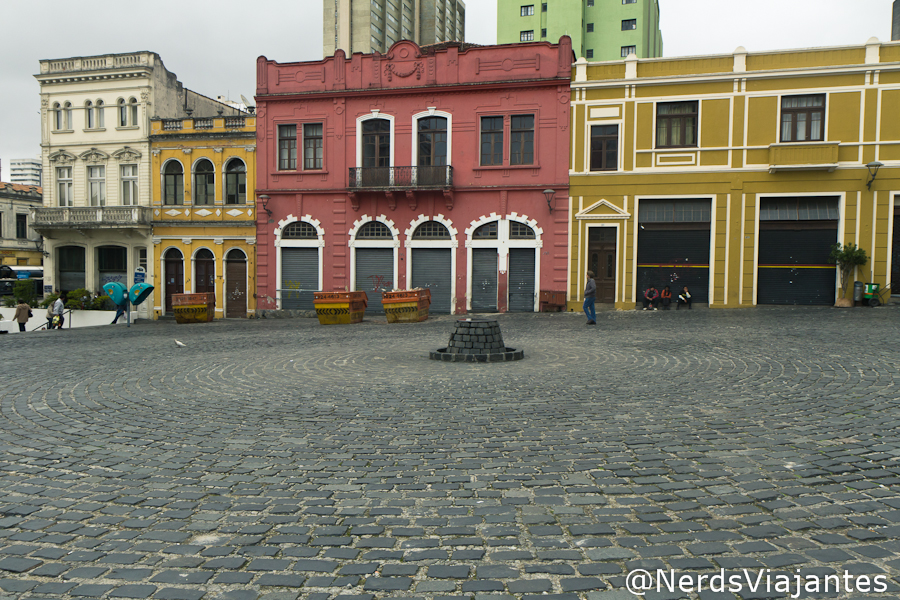A agenda do Curitiblogando, evento que fomos convidados para participar com outros blogueiros em Curitiba, incluiu um passeio pelo centro histórico da cidade. Caminhamos pela região na manhã de sábado e, mesmo com o frio e um pouco de chuva, nós gostamos bastante. 🙂 Começamos o passeio pelo Largo da Ordem, antigo ponto de comércio que atualmente é fechado para trânsito de veículos, apenas de pedestres. Concentra várias atrações interessantes, como belas igrejas, lojas, construções antigas, bares e restaurantes. Aos domingos há uma feira de artesanato que dizem ser muito interessante, mas que desta vez não tivemos a oportunidade de conhecer. Mais uma ótima razão para voltar. 🙂