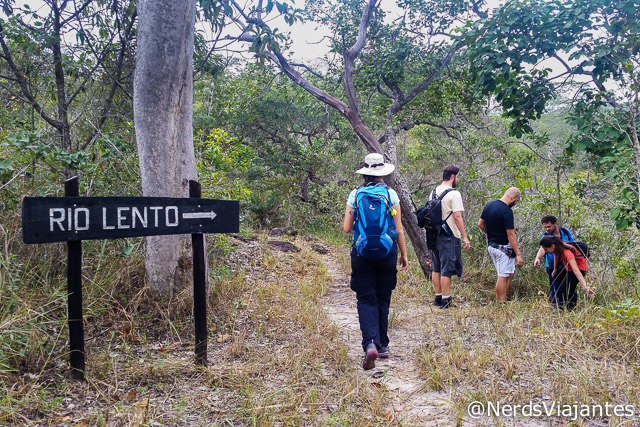 Algumas trilhas precisam de guia ou condutor do próprio parque pois passam por lugares mais sensíveis ou que podem colocar o visitante em risco. A Trilha das Cachoeiras e a Trilha das Corredeiras são exemplos de trilhas que precisam de guia. No post o que fazer no Parque Estadual do Rio Preto nós explicamos os horários de saída para elas com os próprios condutores do parque. Nada como alguém do lugar para te dar segurança e explicar questões relacionadas a fauna e flora. Os condutores do parque tem horários para sair e não é necessário pagar nada a parte pelos serviços. Nas duas fotos a seguir mostramos dois trechos da Trilha das Cachoeiras em trechos ao lado do Córrego das Éguas em pontos onde não há marcação alguma do caminho. Um condutor local guiará os visitantes pelos lugares mais seguros.