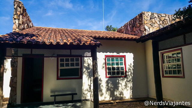 O visitante tem a opção de dormir na cidade de São Gonçalo do Rio Preto ou dentro do parque, onde é possível acampar ou ficar nos alojamentos. Nós ficamos hospedados por poucas noites na pousada Canto das Águas, que fica em uma antiga fazenda perto da cidade (entre 1 e 2 quilômetros de distância). A pousada fica em um antigo casarão e é muito aconchegante. A proprietária Dona Dora sempre nos deu muito atenção e nós gostamos muito do atendimento. O único problema (assim como se for ficar hospedado na própria cidade) é a distância do parque. Nós gastávamos todo dia cerca de 1 hora para fazer o trajeto de ida e mais 1 hora para a volta. Este é um dos motivos pelos quais nós recomendamos ficar hospedado dentro do parque. Como eu já disse, dentro do parque há as opções de alojamentos e área de camping. Os alojamentos são 12 no total, com capacidade para 2 a 5 pessoas em cada. Tem camas, banheiro e até frigobar. Os hóspedes podem levar roupa de cama ou alugar no local. Não tivemos a oportunidade de ficar nos alojamentos, mas os visitamos para conhecer e gostamos da estrutura. A Camila Navarro, do blog Viaggiando, ficou hospedada em um deles e gostou muito. Na época em que nós fomos (Maio/2016) os preços variavam de R$60,00 a R$100,oo, dependendo da quantidade de pessoas.